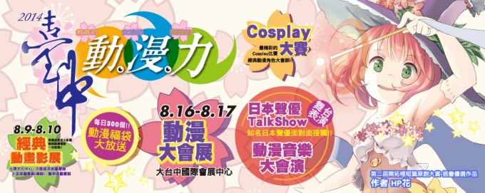 兩日的精采活動皆從上午10點30分開始至下午5點結束,每日還有300個精美動漫福袋大放送,「2014臺中動.漫.力」將再一次掀起中部動漫迷的夏季熱情狂潮。